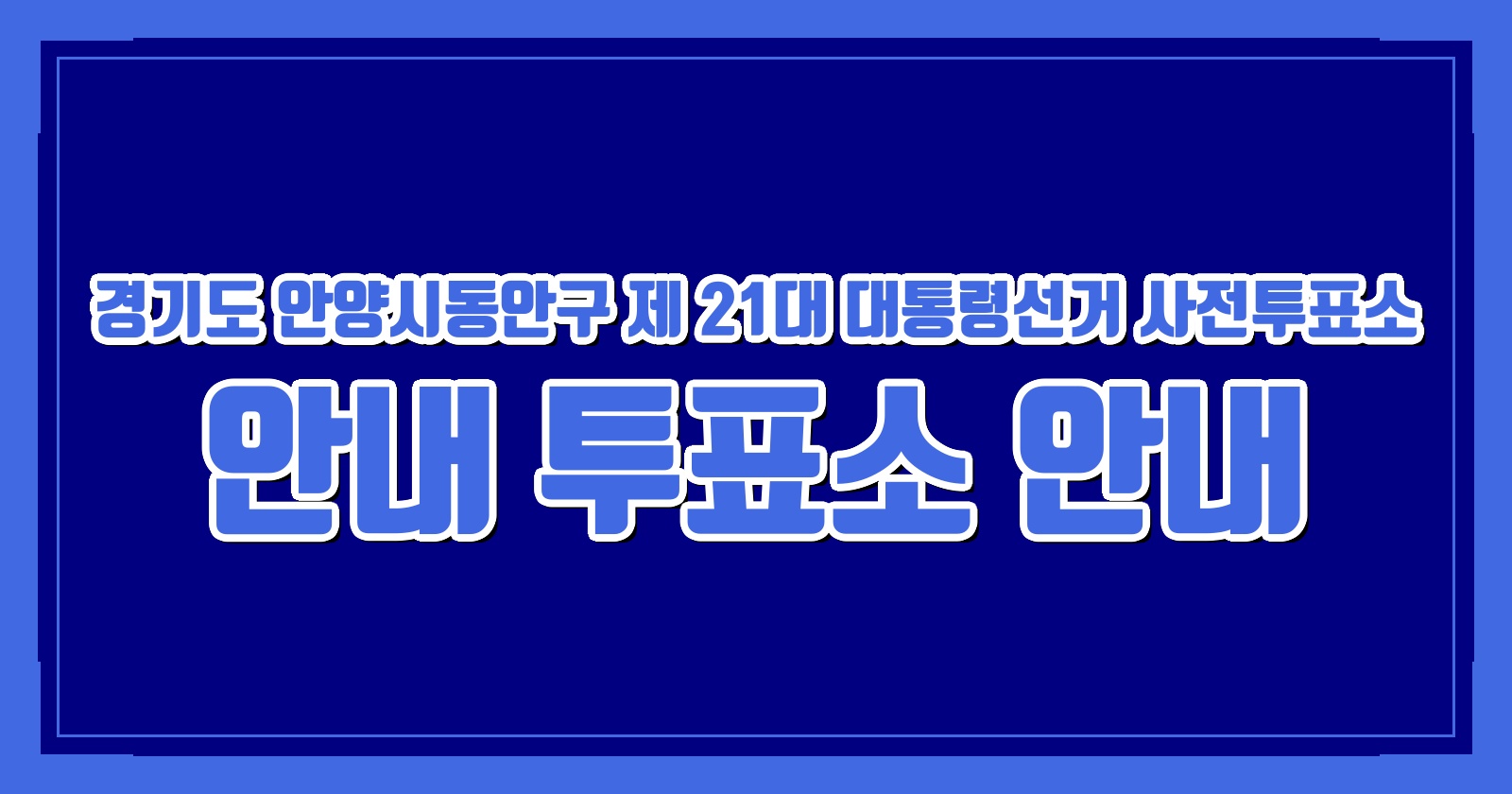 안양시동안구의 사전투표소 안내에 대해 많은 관심과 참여 부탁드립니다. 유권자 여러분의 소중한 한 표가 대한민국의 미래를 밝히는 데 큰 힘이 될 것입니다.
